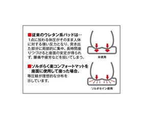 ●いすの座面は、体圧を分散させ優れた安定性を実現しなければなりません。しかし、従来のクッションで柔らかさを増すためには厚くしなければならず、その分だけ安定性が失われてしまうという問題を抱えていました。人工筋肉「ソルボセイン」は、こうした問題を見事に解決した新素材です。