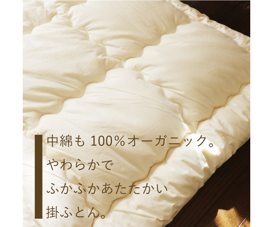 ●オーガニック基準で丁寧に国内で一枚一枚生産したこのふとんは身体を優しく包んでくれるようなふんわり感が特徴です。