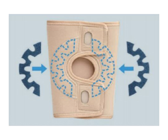 ●▼膝蓋骨周囲に膝蓋骨の安定性を高めるパテラコンプレッションパッドを配置。
