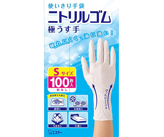 使いきり手袋 ニトリルゴム 極うす手 S ホワイト 100枚