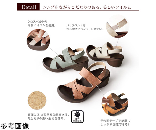 ●足首側のベルトは面テープで調整でき、クロスベルトの付け根にはゴムが施されていて絶妙なフィット感。バックベルトも付いているので、カカトが抜けやすい方にも安心してお履きいただけます。
