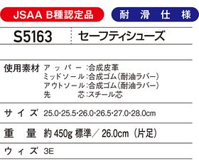 ●使用素材:アッパー/合成皮革、ミッドソール/合成ゴム(耐油ラバー)、アウトソール/合成ゴム(耐油ラバー)、先芯/スチール芯