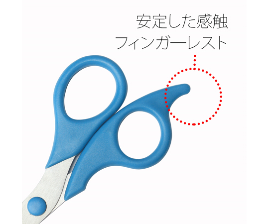 ●大きいリングの方が親指になるように握り、中指を小さい方のリングに入れて、人差指をリング外側のくぼみにそえ、薬指をフィンガーレストにそえると、よりはさみが安定し、正確に切ることができます。