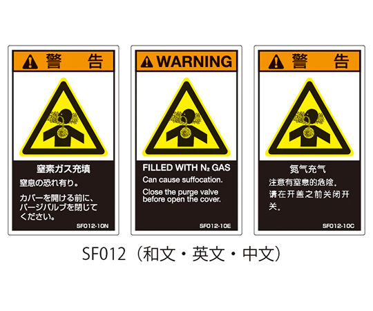 SFシリーズ PL警告ラベル SEMI規格対応 英文 大 窒素ガス充填 1式(5枚×5シート入) SF012-20E