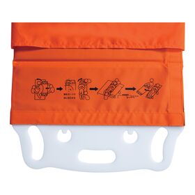 ●オレンジ色の本体に移乗方法のポイントがイラストで入っています。