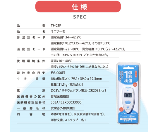 ●▼測定精度:±0.3℃(22~42.2℃)