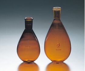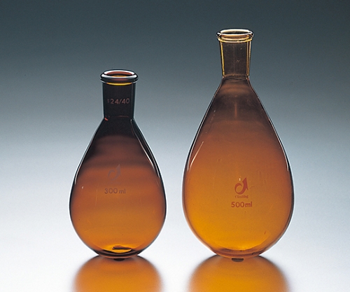 ●茶染加工です。(着色剤として金属イオンを含有する茶褐色素材のフラスコに比べ内部溶液への金属イオンのコンタミネーションを抑える為、フラスコ(白)の溶液に触れない表面のみを特殊インクにてコートしたものとなっています。)
