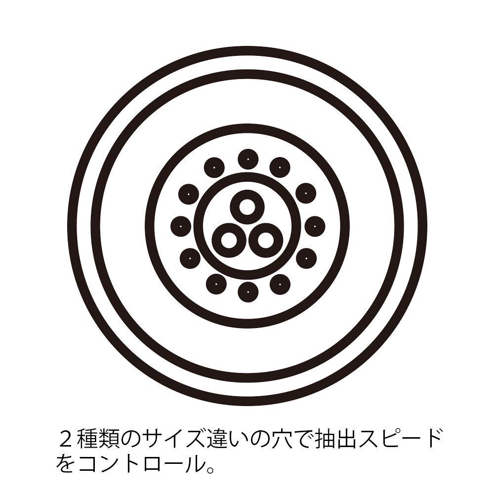 ●2種類のサイズ違いの穴で抽出スピードをコントロールします。