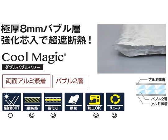 ●両面のシャインアルミ蒸着による輻射熱カット、中心部のバブル2層構造による断熱性を高めたシートです