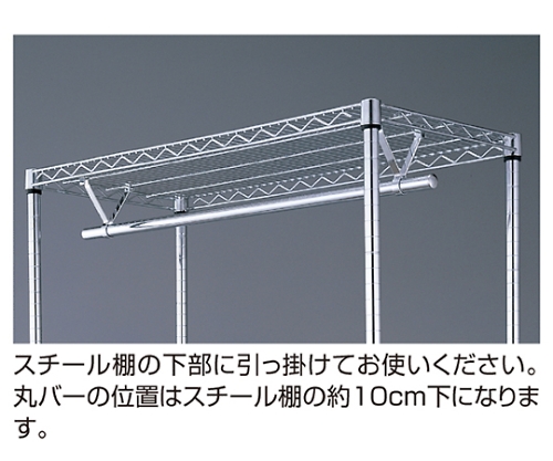 ●丸バーの位置はスチール棚の約10cm下になります。