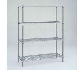 ●材質:棚板/SUS304(18-8)ステンレスワイヤー、電解研磨仕上げ、柱/SUS304(18-8)ステンレス、研磨仕上げ、ポールキャップ/ポリエチレン、ダイカストナット/亜鉛、アジャストボルト/スチール製三価クロメート処理