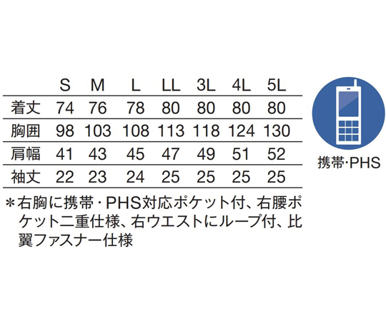 ●右胸上部に、かがんでも落ちにくいPHS・携帯用のポケット付。