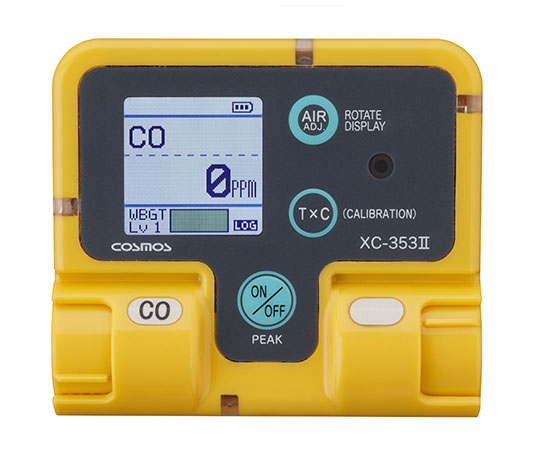 ●付属機能:電池残量表示、ピークホールド機能、積算濃度表示機能、液晶表示反転機能、警報履歴機能、ガス警報以外の警報機能(積算濃度、センサ異常、電池残量、エアー調整不良)、データロギング機能(NFCによるデータ読み出し)、暑さ指数表示機能(WBGT値を色で識別)