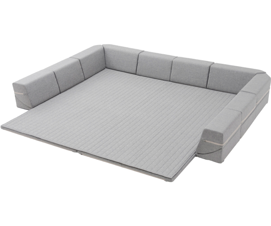 ●コーナー部もリクライニングする背付きマット。