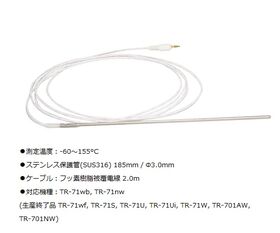 ●材質:サーミスタ/ステンレス保護管(SUS316)、ケーブル/フッ素樹脂被覆