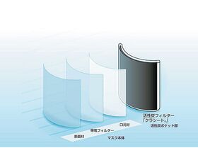 ●材質:本体/PP(ポリプロピレン)、耳部/ナイロン・ポリエステル・PU(ポリウレタン)、フィルター部/PP(ポリプロピレン)・活性炭・PU(ポリウレタン)、ノーズブリッジ部/PP(ポリプロピレン)