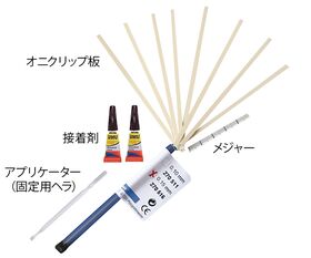 ●セット内容:オニクリップ板0.1mm・0.15mm×各4枚、接着剤×2本、メジャー、アプリケーター(オニクリップ固定用ヘラ)