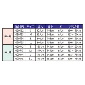●身丈・身巾・裄・対応身長:140・143・65・163~168cm