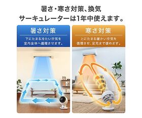 ●直線的なパワフル送風で室内の空気を循環させ、夏は冷房、冬は暖房効率を上げ一年中使えます。