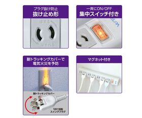 ●プラグ抜け止めで不意のプラグ抜けが無く、コンピュータなどのデータをしっかりガードします。