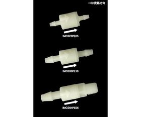 ●矢印方向へしか液体やガスを通さないようにスプリング式ボール弁を内蔵した軟質チューブ用です。