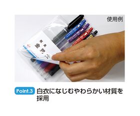 ●白衣の胸ポケットをペンのインク汚れから守ります。