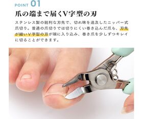 ●V字型の刃が切りにくい巻き込んだ爪も少しづつキレイに切ることができます。