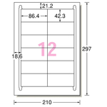 エーワン ラベルシール[プリンタ兼用] マット紙・ホワイト A4 12面 86.4×42.3mm 四辺余白付 31504 1冊(100シート)