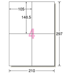 エーワン ラベルシール[プリンタ兼用] マット紙・ホワイト A4 4面 105×148.5mm 31545 1冊(100シート)