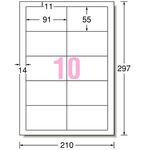 エーワン ラベルシール[プリンタ兼用] マット紙・ホワイト A4 10面 91×55mm 四辺余白付 31514 1冊(100シート)