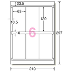 エーワン ラベルシール[プリンタ兼用] マット紙・ホワイト A4 6面 63×120mm 四辺余白付 角丸 73206 1冊(100シート)