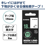カシオ NAME LAND キレイにはがせて下地がかくせる強粘着テープ 18mm×8m 白/黒文字 XR-18GCWE 1個